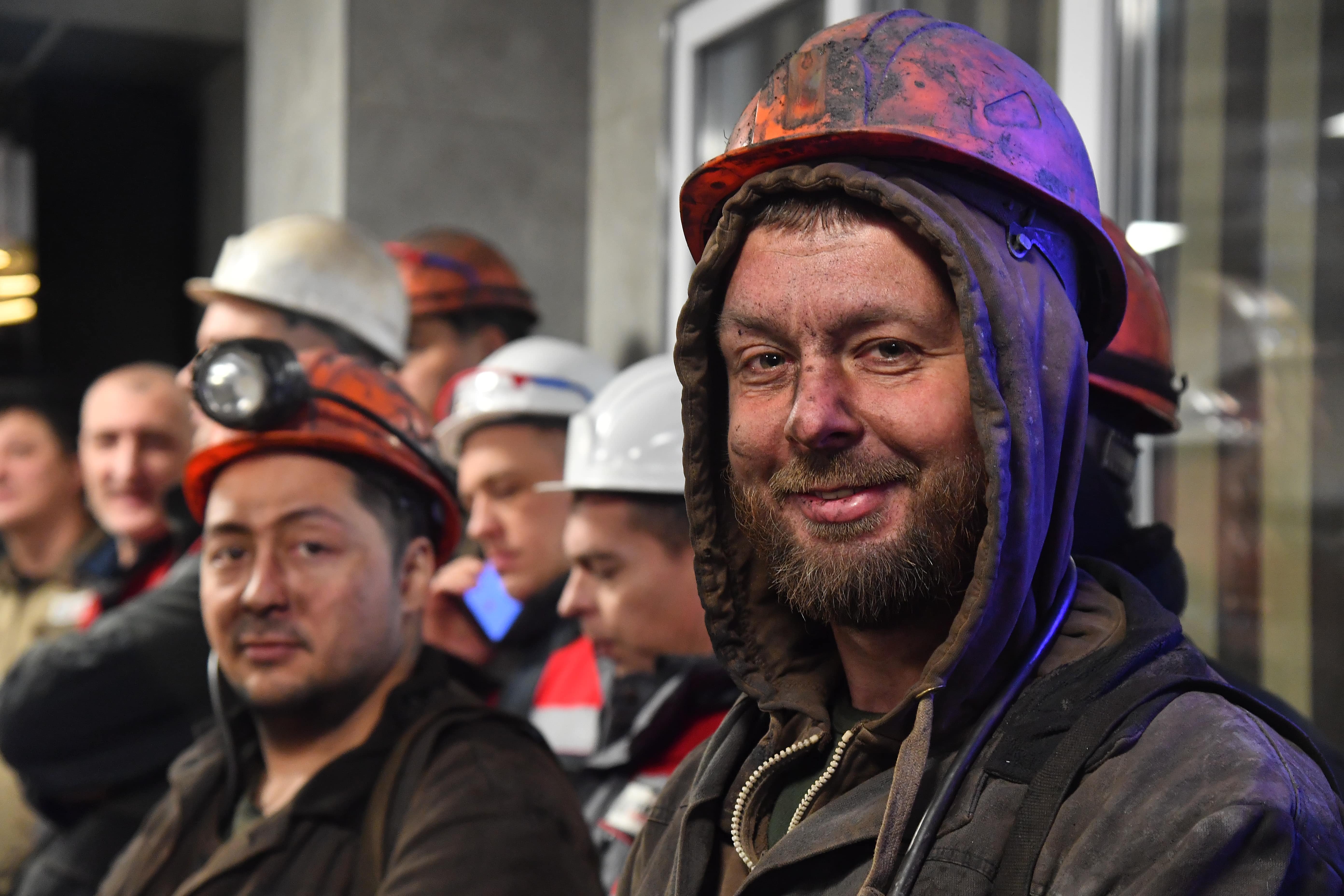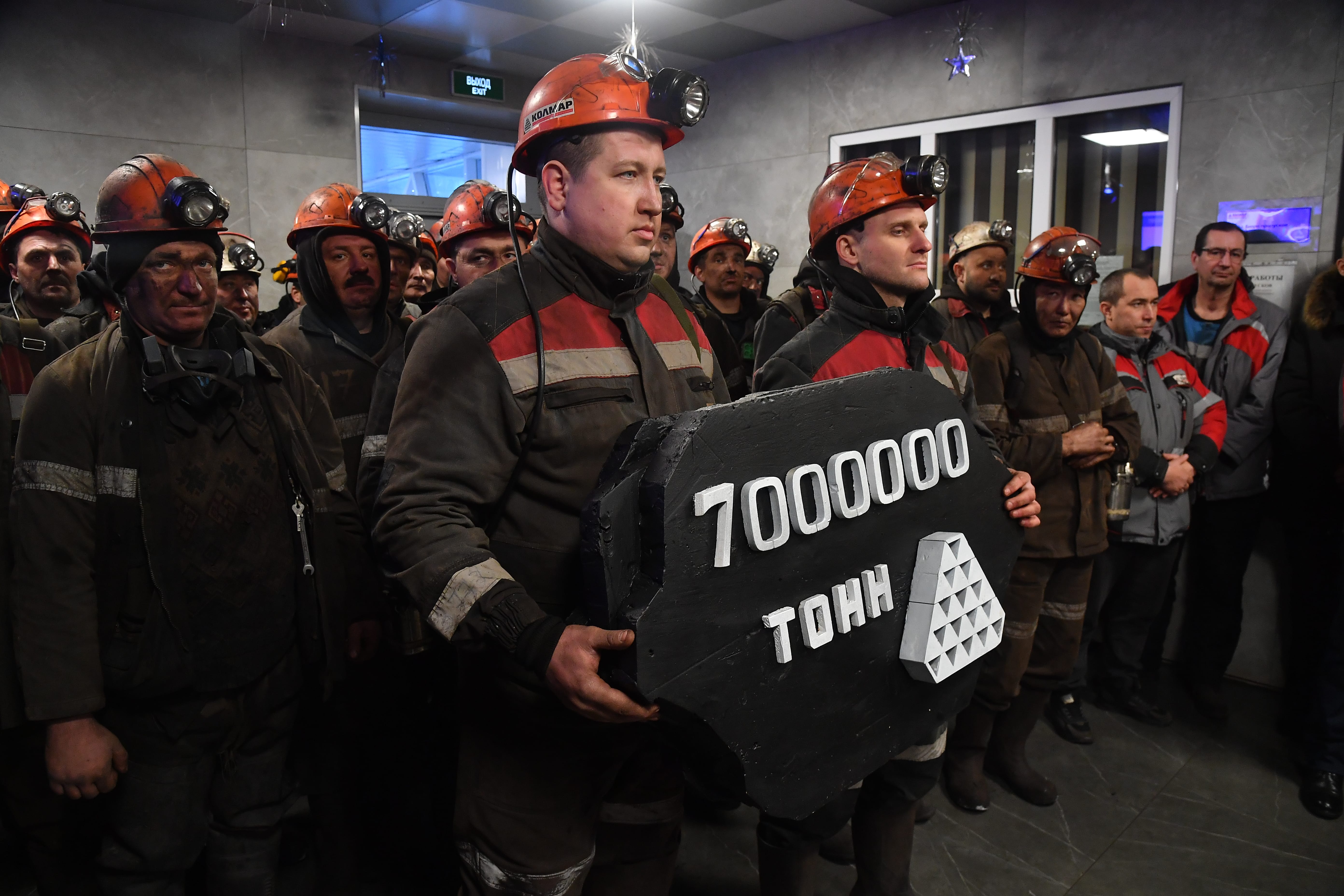 В торжественной обстановке шахтёры вышли с углем, символизирующем